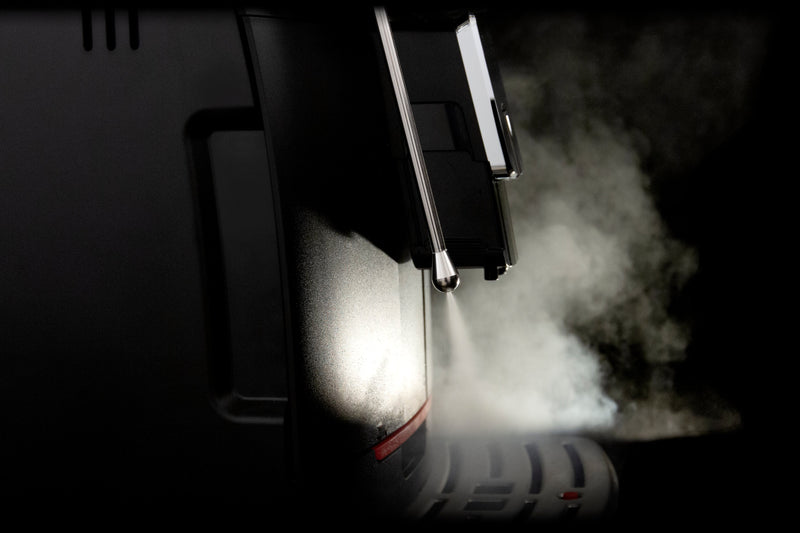 A stainless steel commercial wand offers velvety, custom-made milk froth with tight microfoam for latte art.